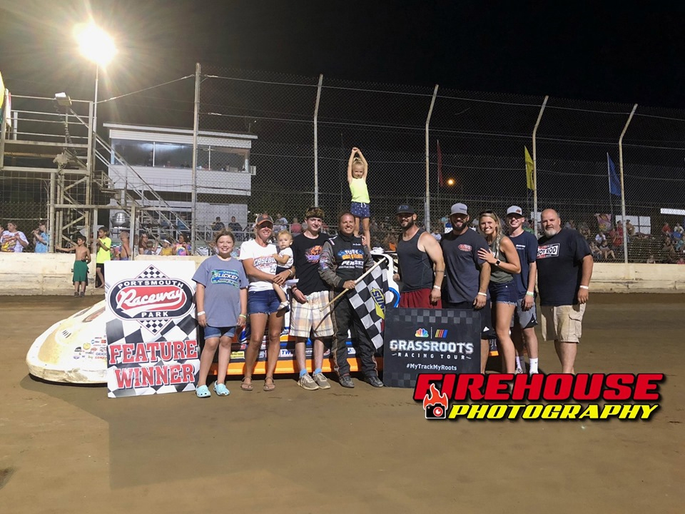 Steve Casebolt in victory lane during the 2019 racing season at Portsmouth (OH) Raceway Park - Firehouse Photography